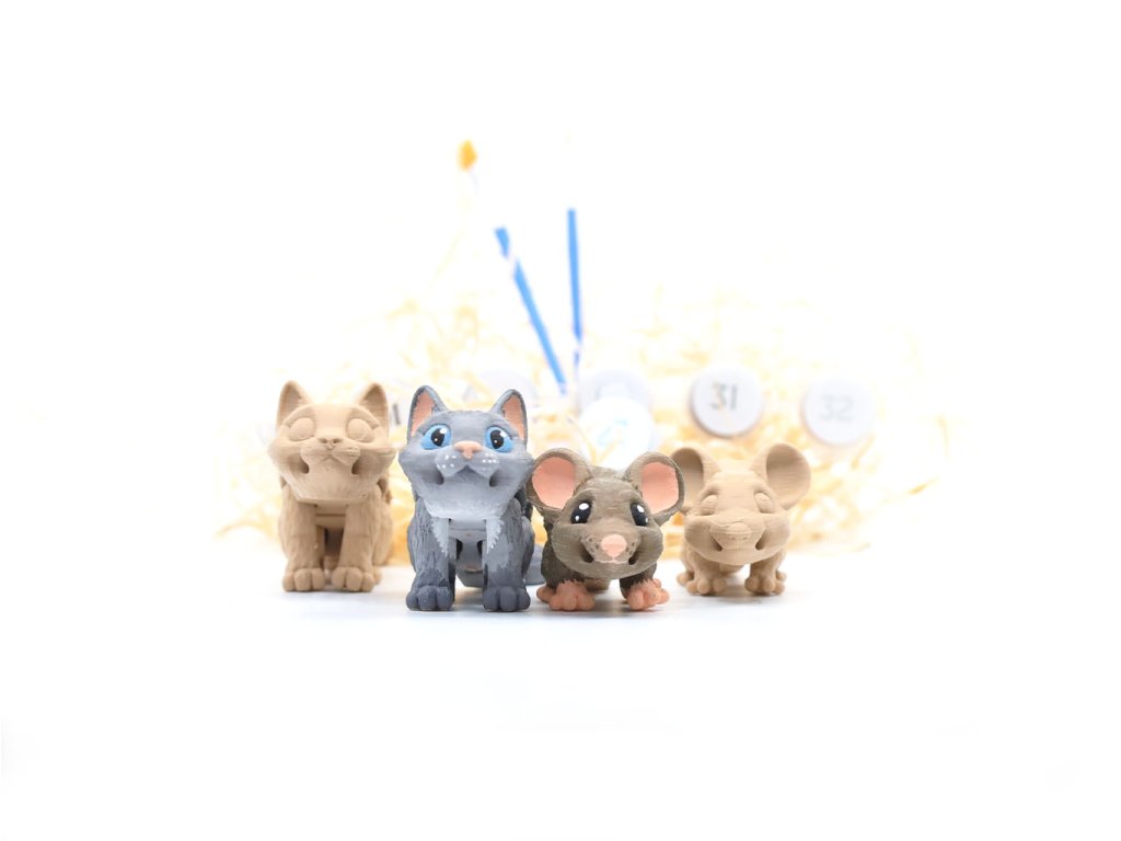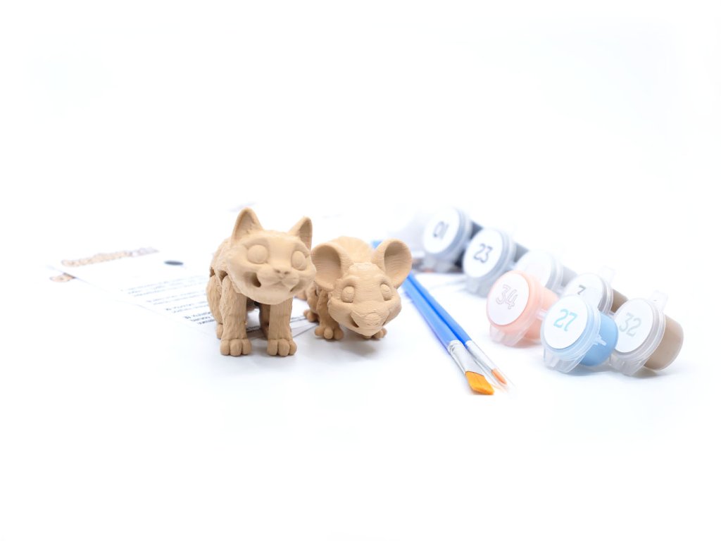 Mini zvířátka Creative Friends Kočka a Myš v sadě s barvami, štětci, návody a kroužky na klíče.