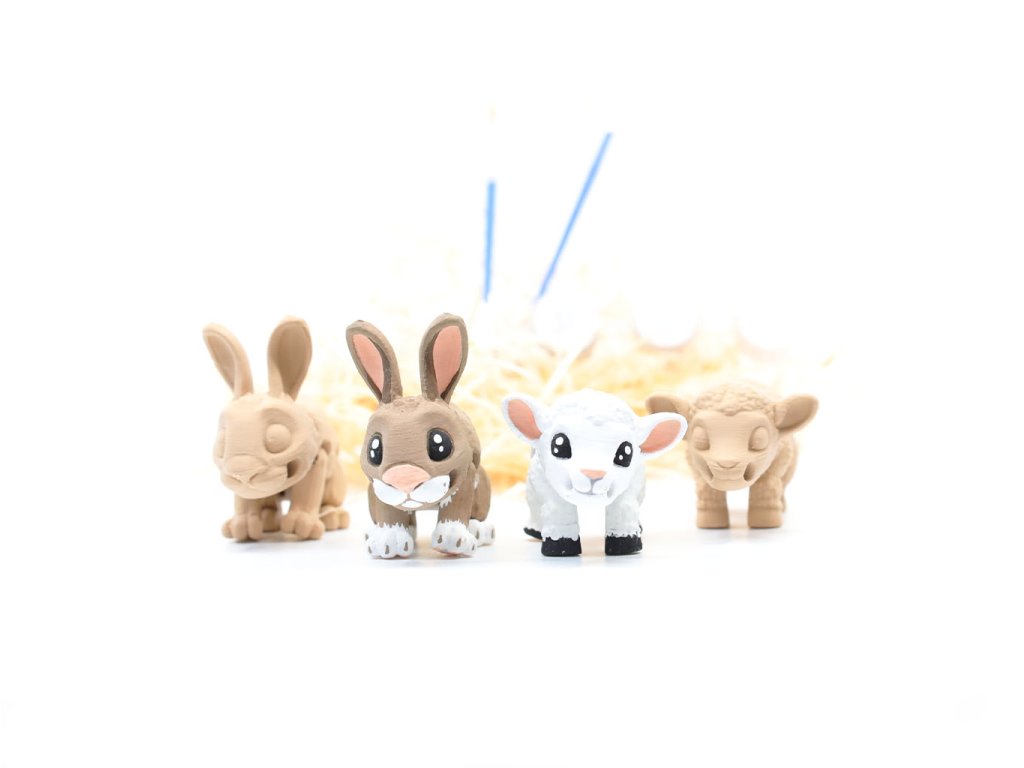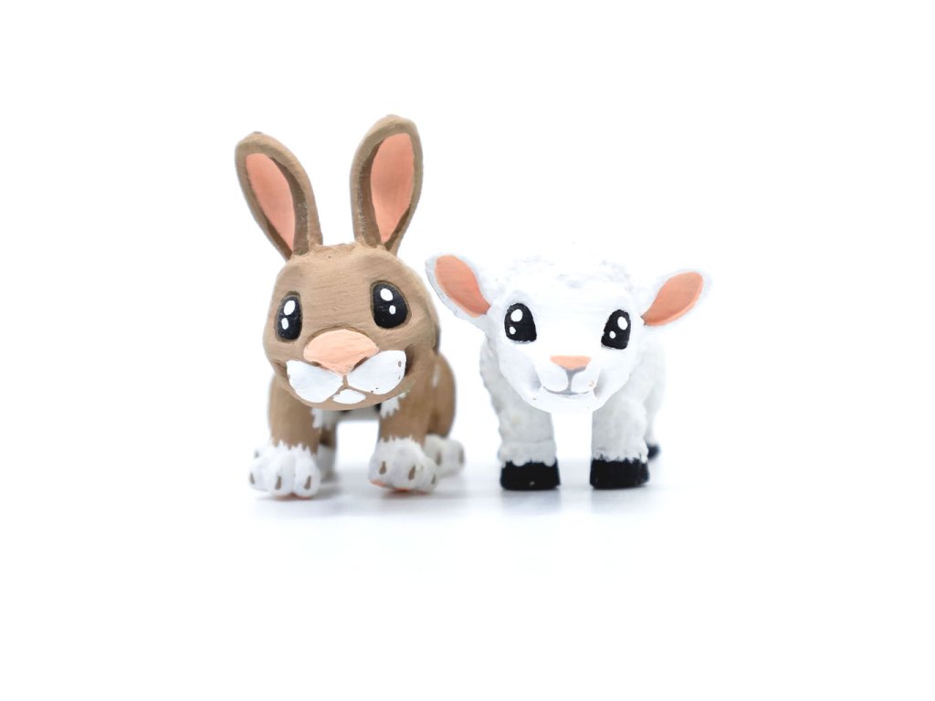 Mini zvířátka Creative Friends Zajíc a Ovce v sadě s barvami, štětci, návody a kroužky na klíče.
